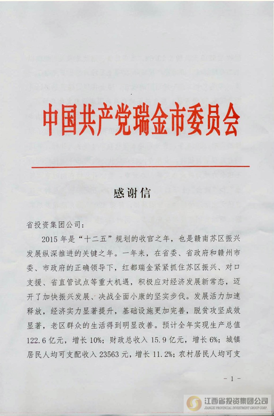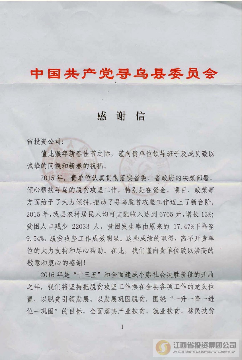 来自瑞金市、寻乌县的感谢信