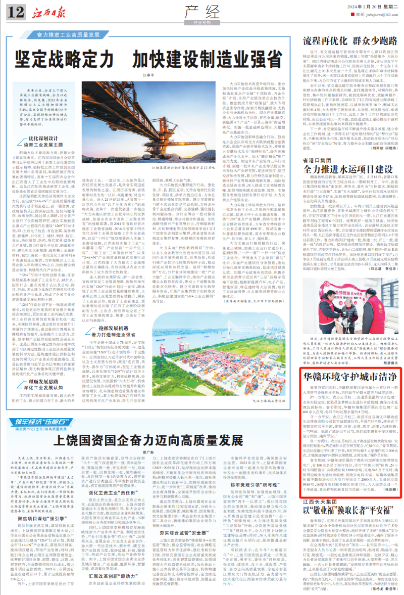 2月20日,江西日报以《华赣环境守护城市洁净》为题,报道华赣环境集团及所属企业守“蓝”护“绿”不打烊,保障城市“春洁”。